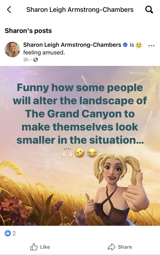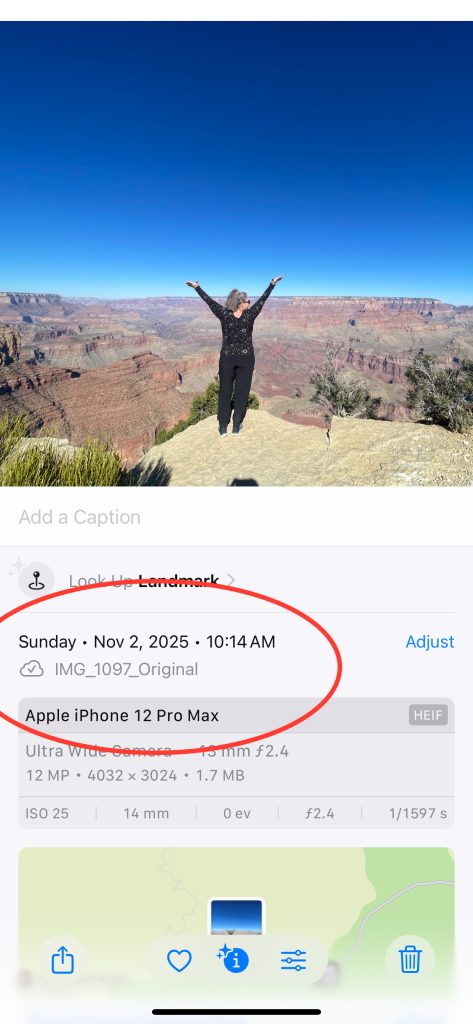 That photo triggered her enough that only a few hours later, she accused me of changing the landscape of the GRAND CANYON to “make themselves look smaller”. π