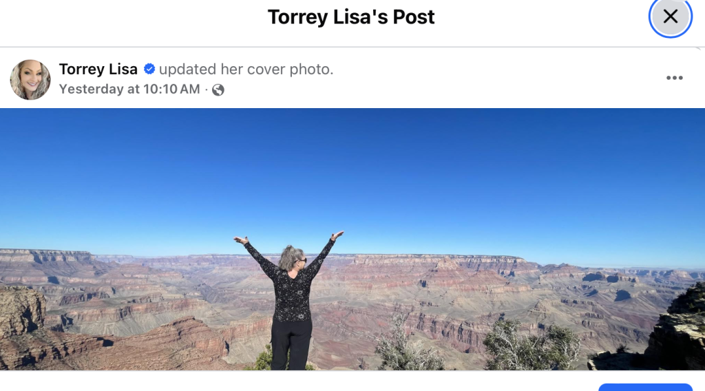 At 10:10am I changed my cover photo to a photo of me taken at the Grand Canyon last week.